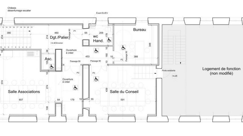 - Mise en accessibilité du bâtiment (RDC et R+1) aux personnes à mobilité réduite