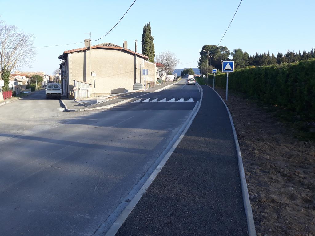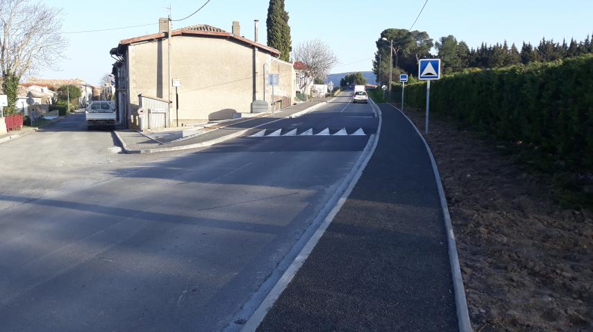 P.C: "Tout a été pensé avec l'ATD pour améliorer la sécurité. L'axe de la route départementale a été déplacé vers le lotissement des pins pour augmenter la visibilité au niveau carrefour. Les automobilistes arrivent désormais à la perpendiculaire de la RD3. Un cheminement piéton a été réalisé au niveau du carrefour. Sur la départementale, un plateau traversant permet de sécuriser sa traversée mais aussi de réduire la vitesse des véhicules. L'arrêt de bus a été déplacé et refait au niveau du plateau pour améliorer la sécurité des enfants. Ces travaux ont été réalisés à partir de septembre 2018. "